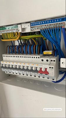 He arrived first thing Monday morning and had the new fuse box fitted and operational in a few hours. He also fitted a spur at the switch for the outside lighting.